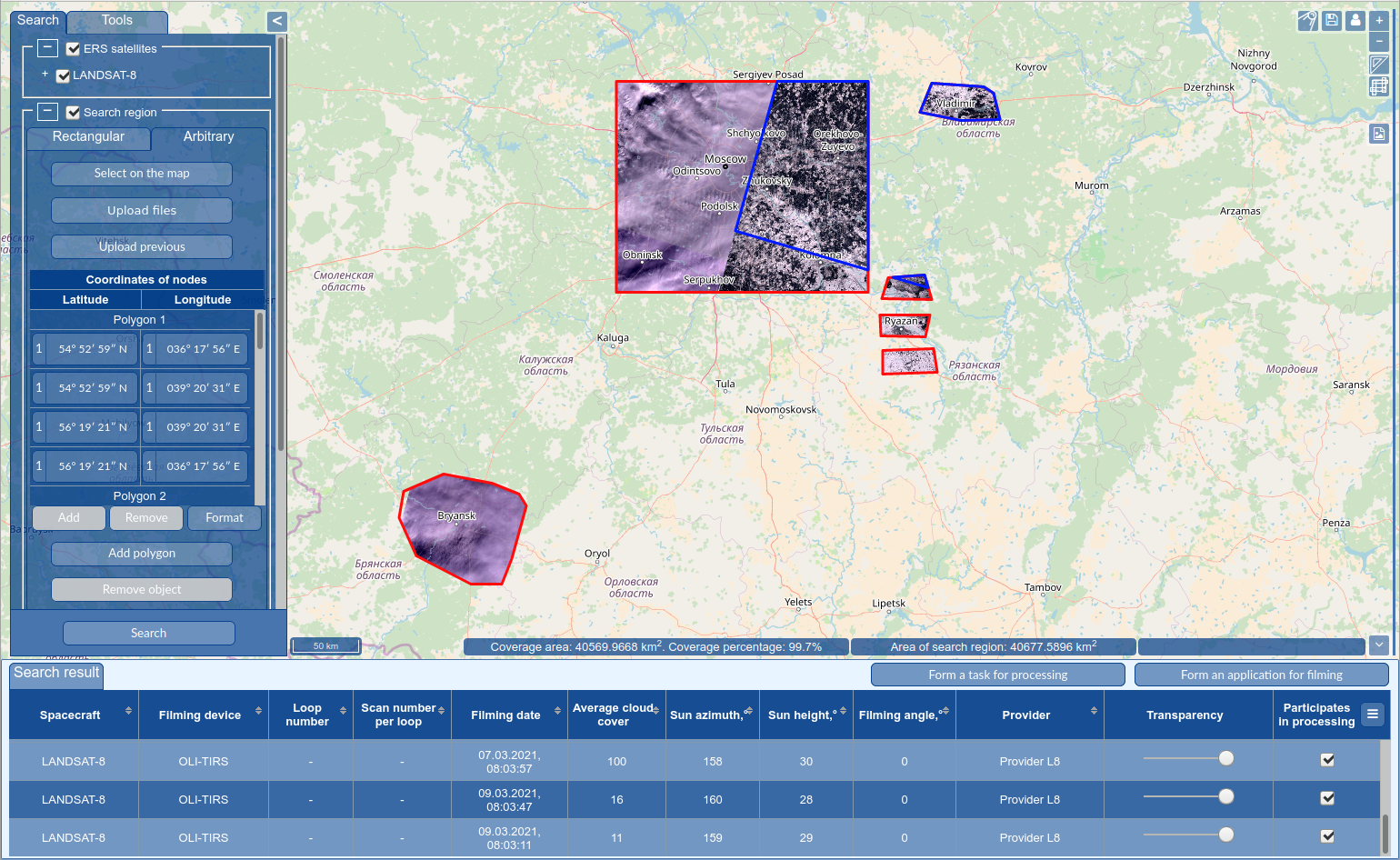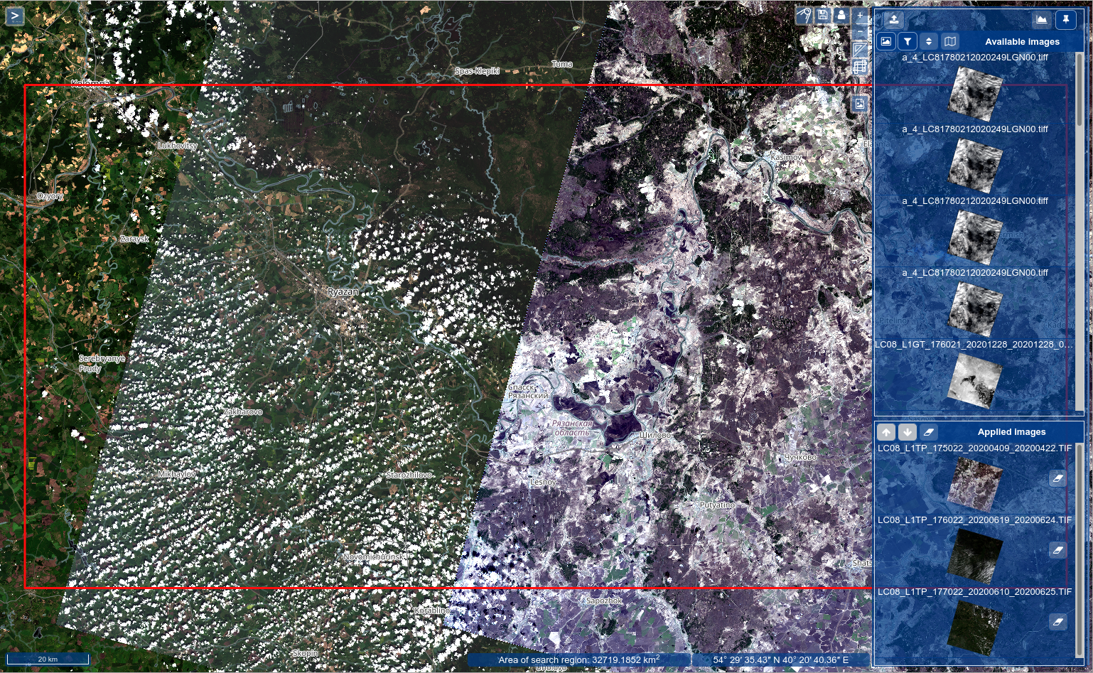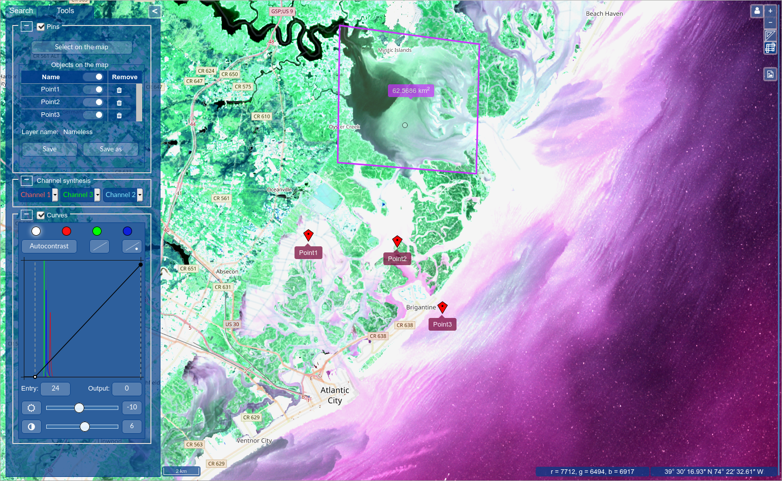- contrasting images, channel synthesis, brightness measurement, pansharpening;